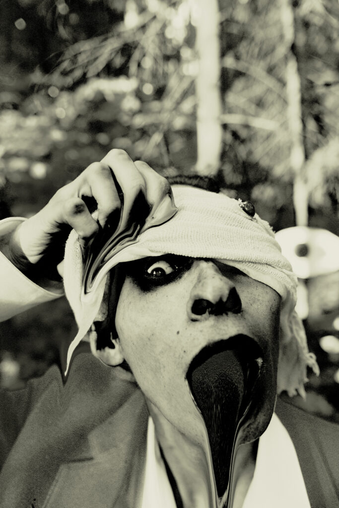 — Play. Playing with oneself, an image, a space. I like to create conditions where, while being like an “adult,” you can again allow yourself to become whoever you want! To play someone you can’t be in ordinary life. But besides the fun and some kind of high, I am still inspired to a greater extent by death. This theme has been with me for a very long time. It both fascinates, terrifies, and attracts. You seem to think, conceptualize, but you won’t know for sure until you try. The next theme is illusiveness, and along with it, the annoying questions: “What is reality?” and “How to feel it?”. I still don’t know and I’m racking my brains. Sometimes it seems that “here! here it is!”, and then again a fall. Generally, if you look at me not as a creator, but as a person who looks a certain way, it’s unlikely that anyone would suspect a tendency towards severe depression in me. I had attempts (intentions for sure) to turn this all into a more “positive,” “joyful” thinking, but every time it fails—I just don’t believe in this sweetness and “blessing” that is so willingly presented (or sold?) by the world. Of course, here one illusion collides with another—both suffering and joy, in which you can alternately drown, but still, for me, the propaganda of “happiness” imposes oblivion of what I consider one of the most significant events—death. And here, in this cauldron, are my ideas for inspiration.