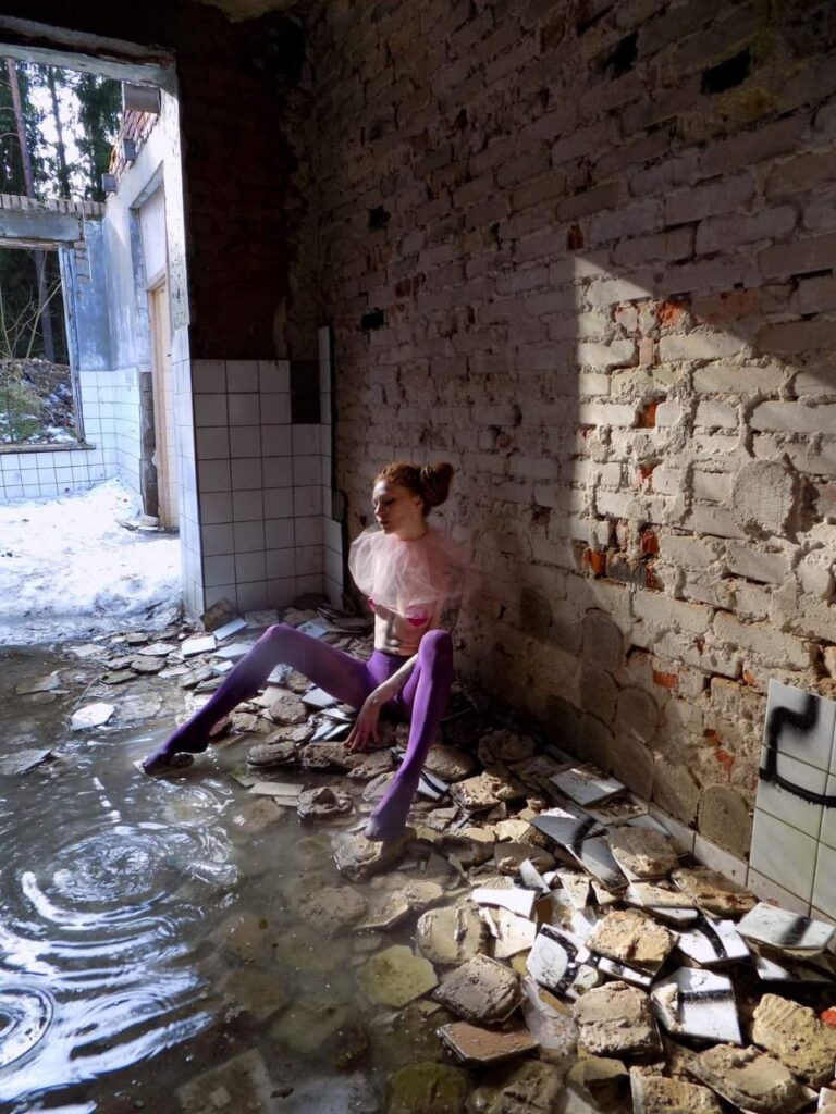 — In Belarus, it was abandoned pioneer camps, the frozen Minsk Sea, the winter forest, or the Azgur Museum. In Lithuania, it was abandoned factories. There was a story in a park in Vilnius where I was being photographed semi-nude. There were people in the park, but they weren’t outraged; rather, they said it was beautiful. That touched me. We also did shoots in the city center, in parks early in the morning before people arrived, and in a pond with lilies. In general, I love unusual locations.